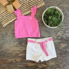 Descubra o Conjunto Blusinha e Shorts com Cinto Rosa - Brandili, a escolha perfeita para um look delicado e cheio de estilo! Com design encantador e toque feminino, esse conjunto traz conforto e praticidade para o dia a dia. Ideal para ocasiões especiais ou passeios, ele combina a suavidade da blusinha com a elegância do shorts ajustado pelo cinto. Renove o guarda-roupa da sua pequena com essa peça irresistível!